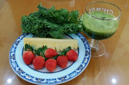Một đầu mối bán rau hữu cơ Đà Lạt về TP.HCM tiết lộ: Sinh tố cải Kale với trái thơm và dâu tây đang được nhiều chị em lựa chọn. Nước thơm ép nguyên chất xay với lá cải Kale và 3 trái dâu tây, đảm bảo đủ vitamin cho một ngày dài, lại có công dụng giải nhiệt và đẹp da nữa,...