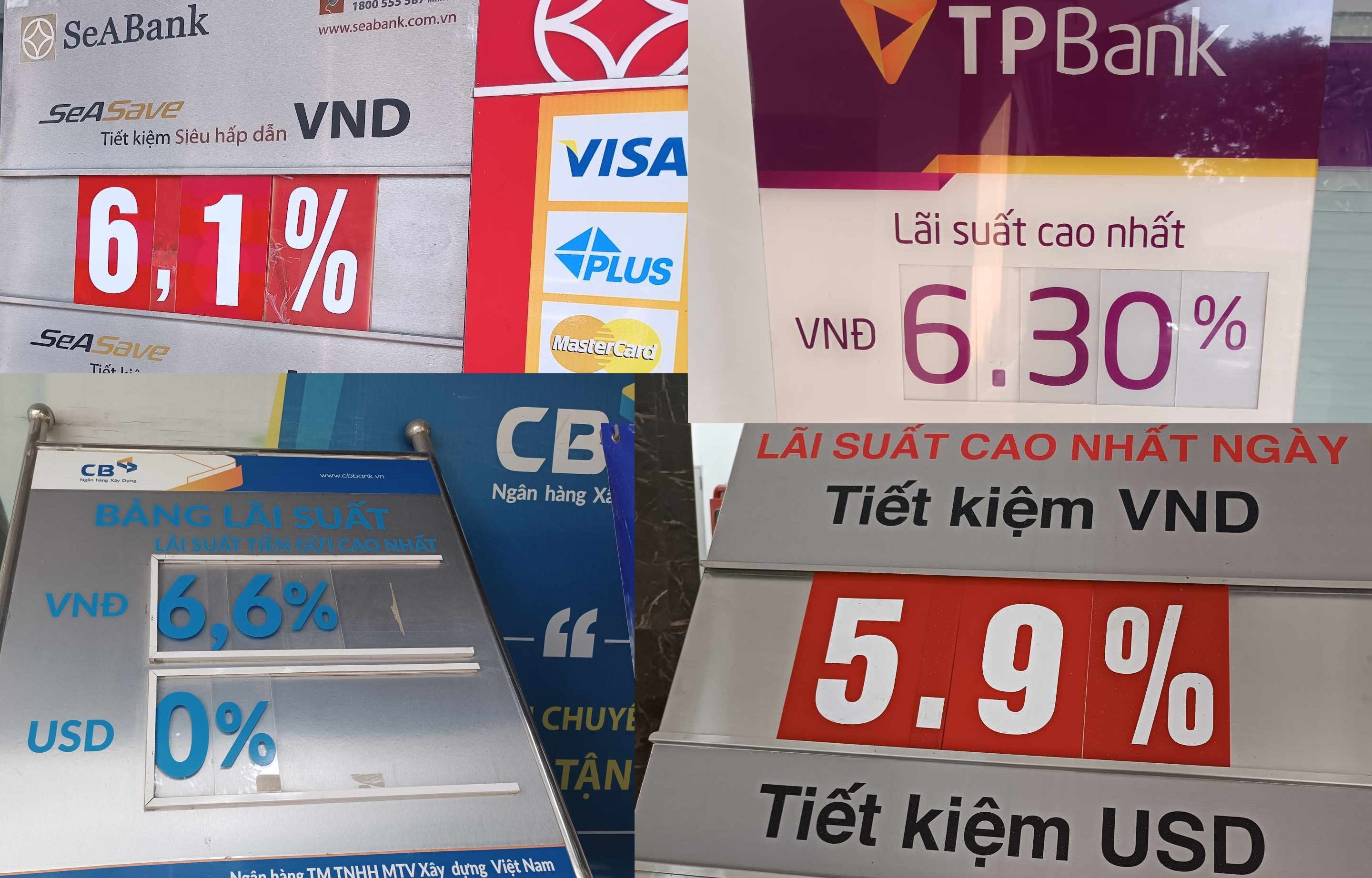 Tuy nhiên, tại các phòng giao dịch của SeABank, tấm biển lãi suất tiền gửi mời gọi khách lại cao hơn nhiều, lên đến 6,1%/năm.
