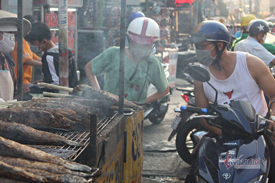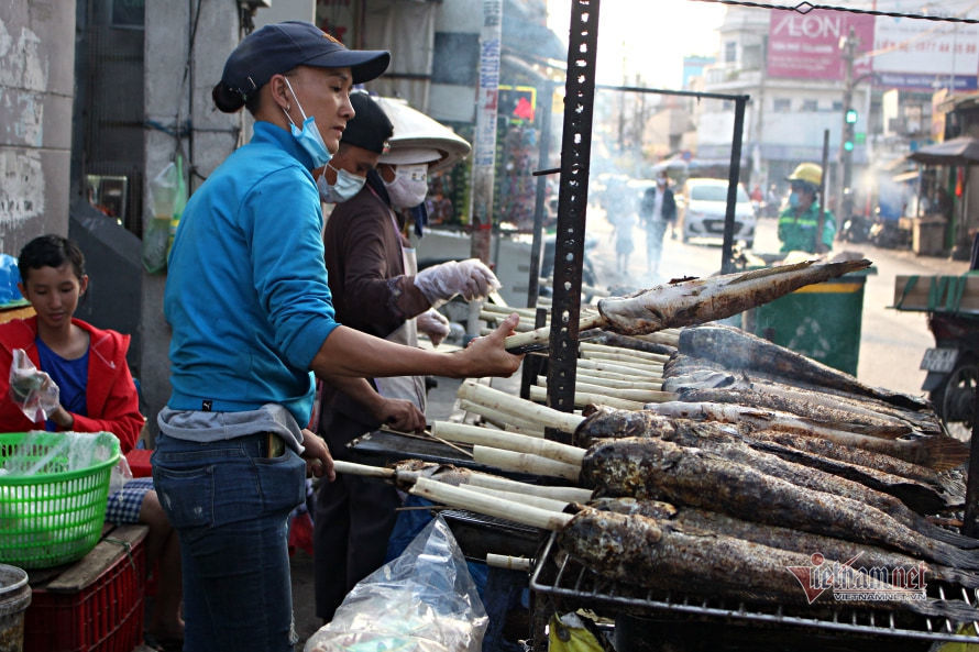 Vào ngày này, cá lóc với nhiều trọng lượng khác nhau đã được người bán chuẩn bị, làm sạch từ trước. Thậm chí, có người đã bán cá nướng từ chiều 20/2 (mùng 9 tháng Giêng). Từ nhiều năm qua, đoạn đường này là điểm bán cá lóc nướng tập trung lớn nhất TP.HCM.