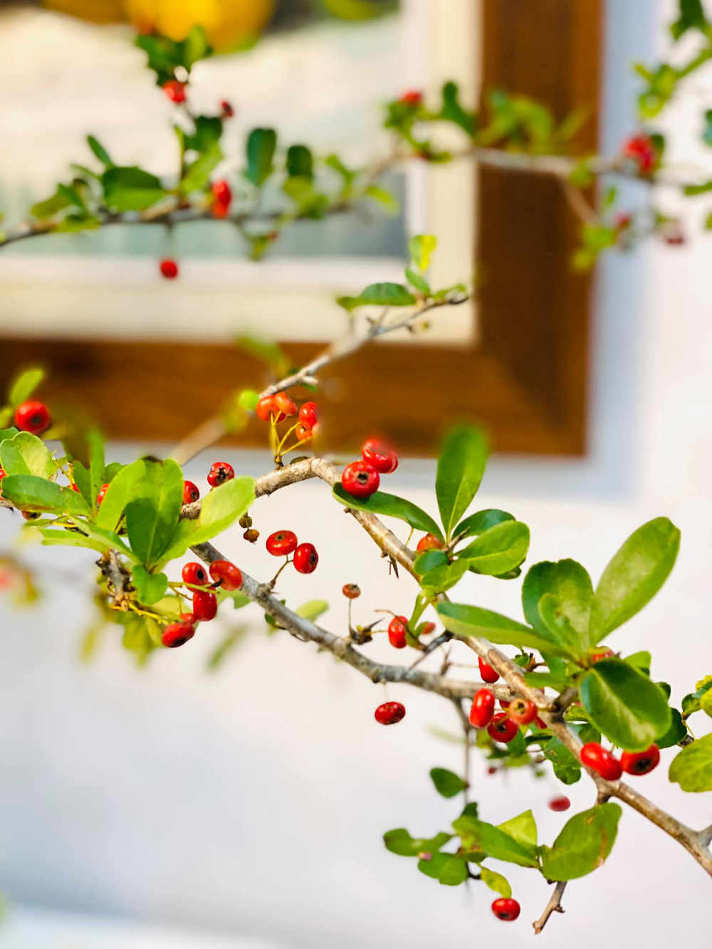 Được biết, 2 năm trước cành quả cherry không mấy được ưa chuộng vì còn lạ lẫm, cứ nghĩ không đẹp vì nhìn như cây dại, nhưng đem về nhà cắm mới thấy lạ, quả sai trĩu mà chụp ảnh lên cũng rất tây.
