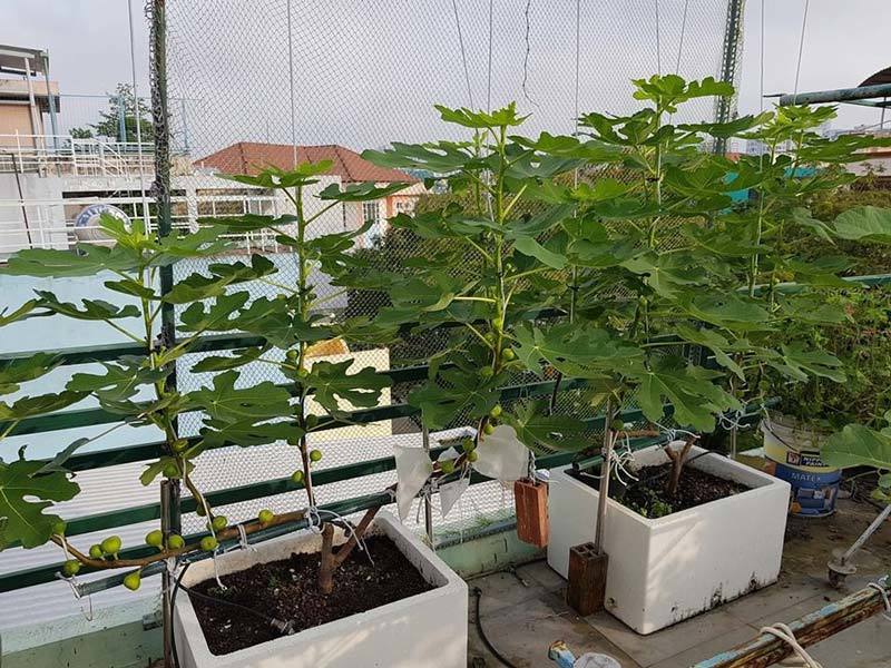 Đầu năm 2020, vào mạng đọc tin tức vô tình chị Thoa thấy có người rao bán giống sung "khổng lồ” ấy với giá 300.000 một cây. Không do dự, chị nhanh tay đặt mua 3 cây về trồng trong thùng xốp cỡ lớn đặt trên sân thượng. Được nhà vườn hướng dẫn cách trồng và cung cấp phân bón nên cả 3 cây sung của chị Thoa đều phát triển xanh tốt.
