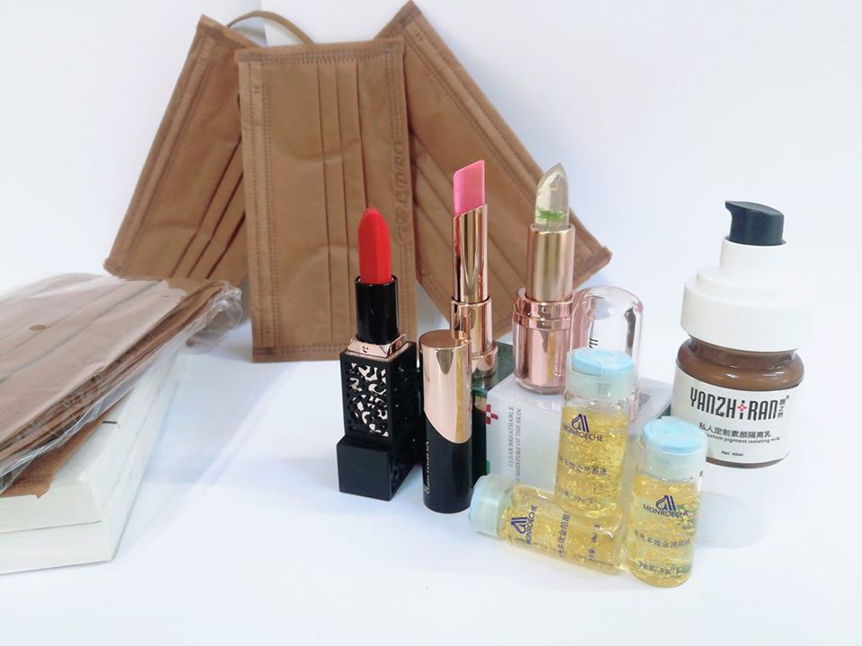 Cũng rất nhanh nhạy, một người bán hàng online cho biết, khách mua bất kỳ sản phẩm làm đẹp nào đều được tặng kèm 1 khẩu trang y tế màu socola tình yêu.