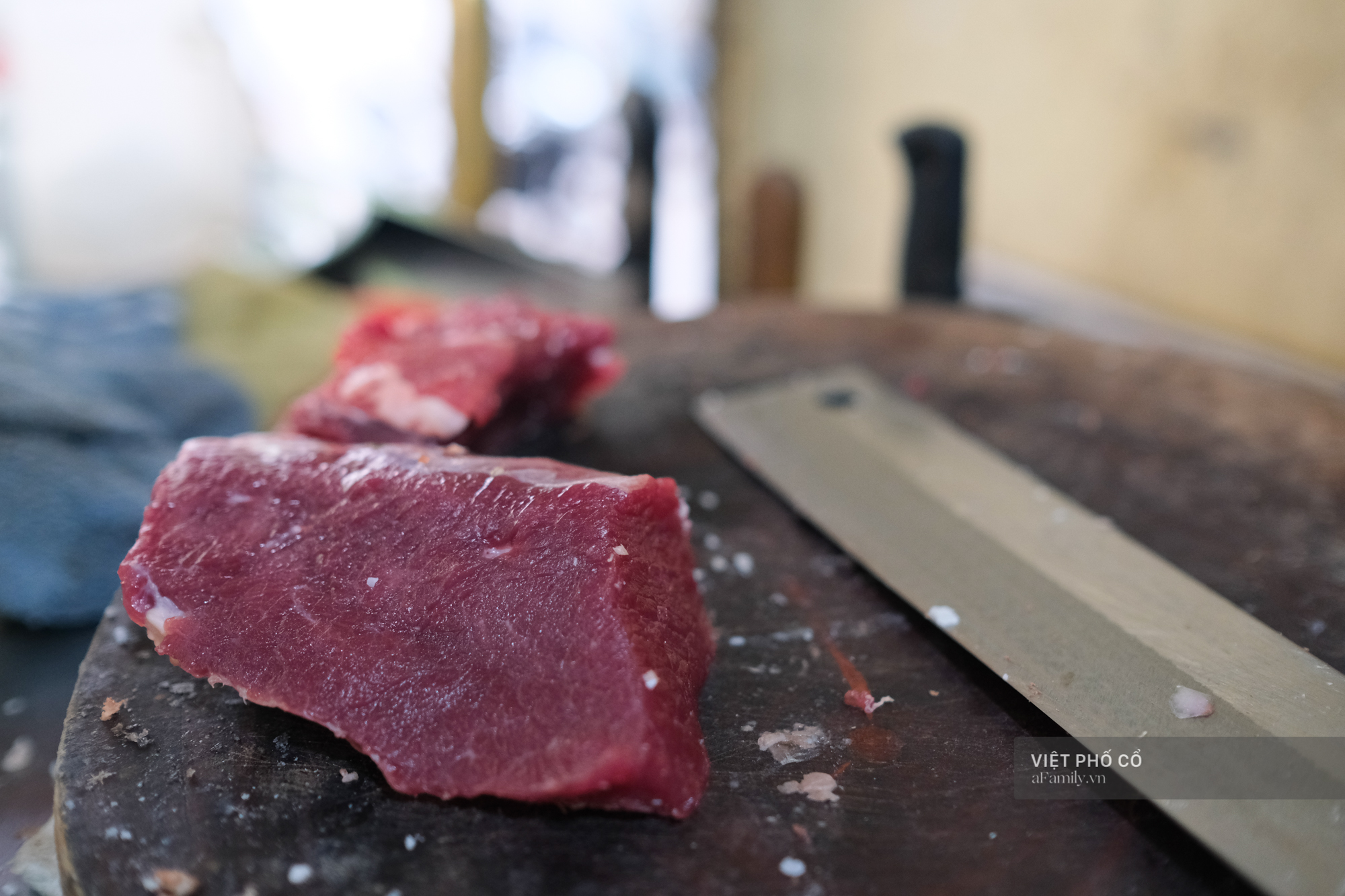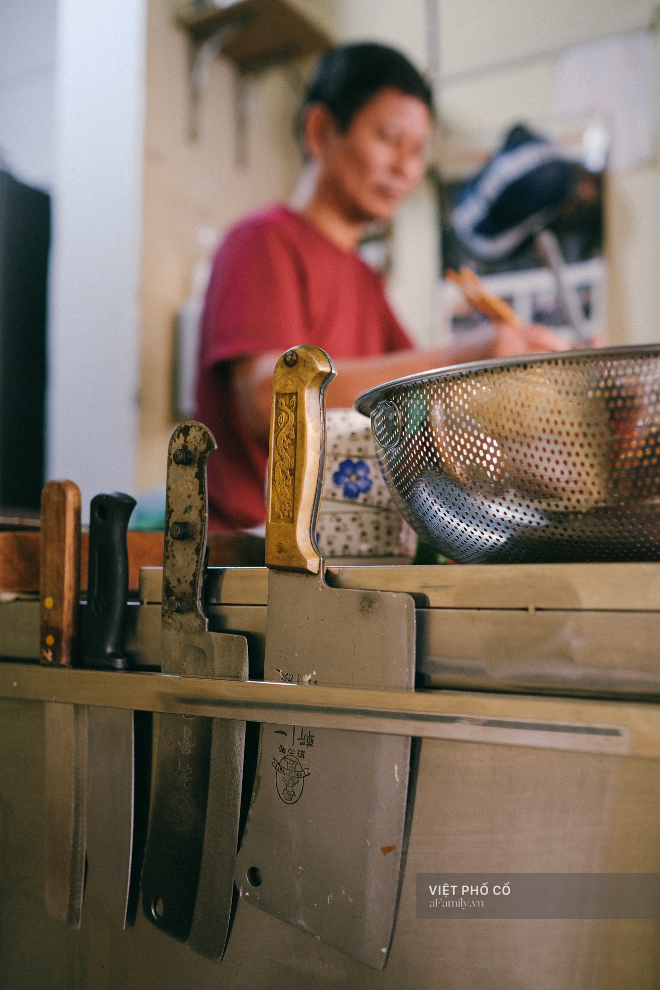 Đó là nơi có bộ dao thái được thửa riêng cho từng việc. Là con dao thái nạm mình dày, nặng nhưng lưỡi sắc lẹm, lướt xuống miếng thịt chín mượt như cắt bơ, không làm rách cái màng lưỡi chài mỏng manh, không khiến phần mỡ gầu bị dày quá.