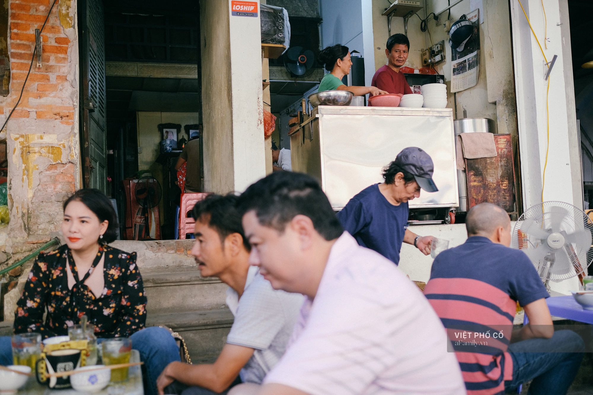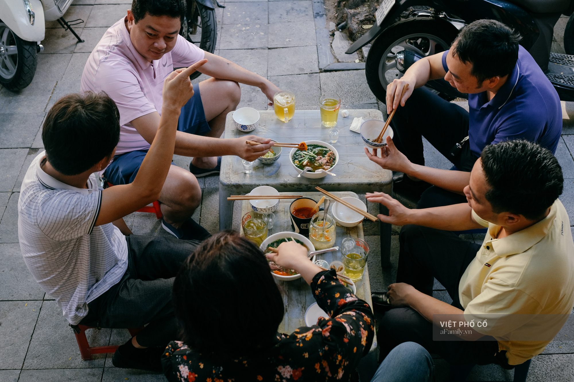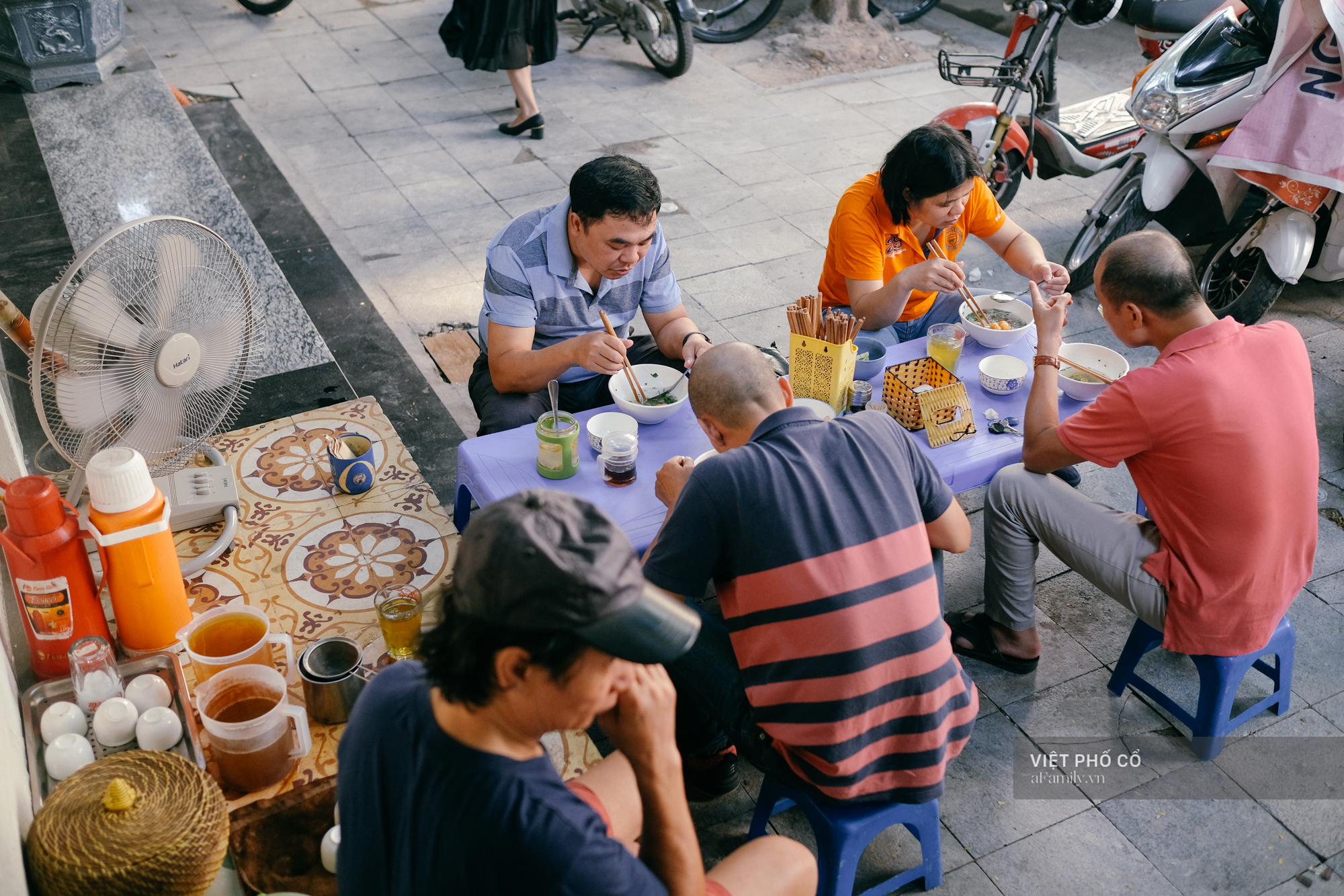 Còn khách, ăn xong uống chén nước trà, tiện thể giao lưu buôn bán với nhau, người buôn vàng, người bán đá quý, điện thoại, quần áo… tự dưng lại thành thân cận. Chả thế mà, có những ngày đột xuất chú Khôi nghỉ hàng, khách quen chân vẫn ra ngồi trà đá, í ới gọi nhau, gọi chú hỏi thăm sức khỏe, giận lẫy: “Nào mai anh có mở hàng không, đừng nghỉ lâu quá em biết ăn ở đâu”... tạo nên một không khí rất đỗi phố cổ, rất đỗi Hà Nội.