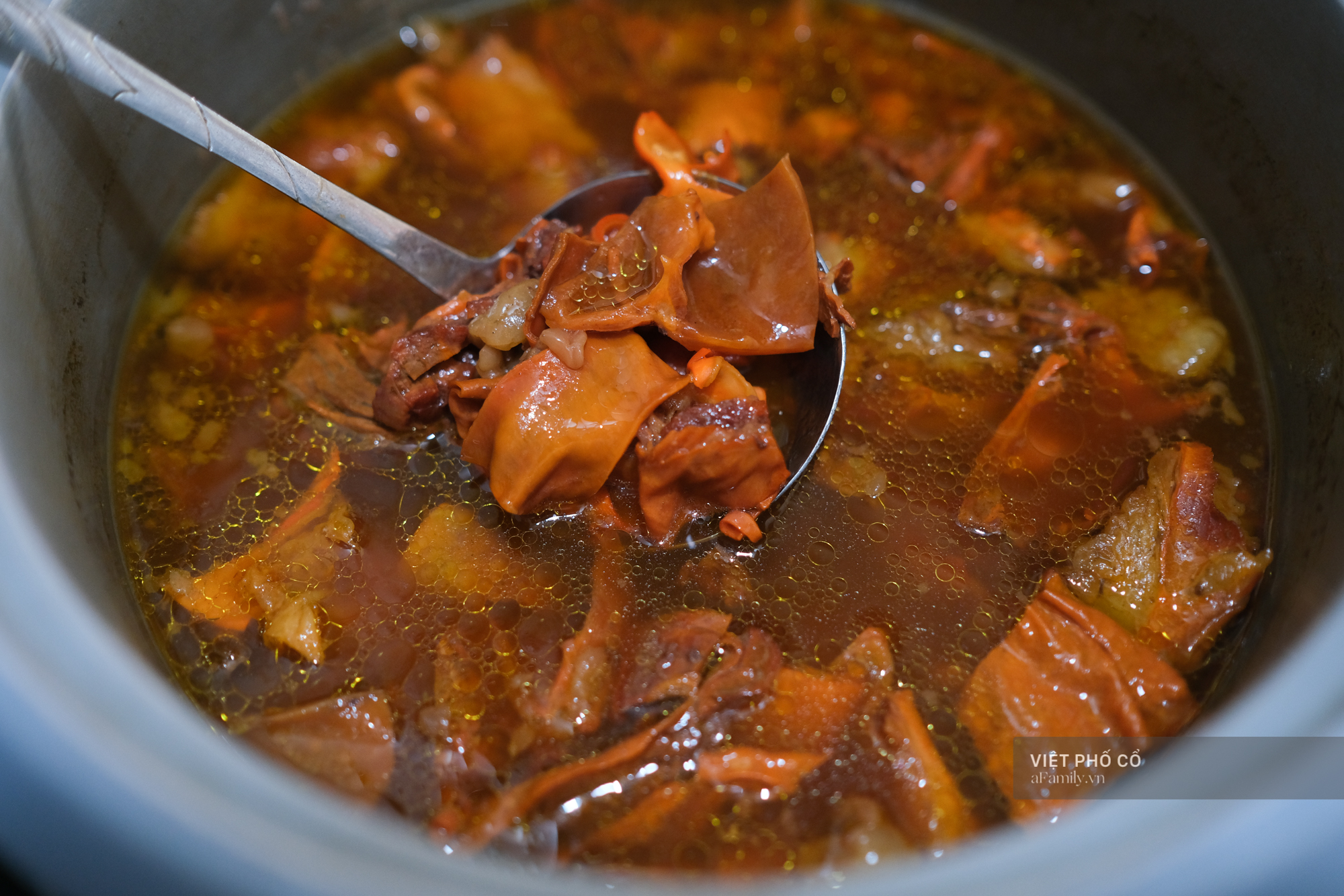 “Cơ bản là xương. Xương ngon thì nước phở mới chuẩn. Xương ống lấy về, chú chặt dọc như bổ củi để vỡ tủy ra, đem ngâm trong nước lạnh chừng 4 - 5 tiếng cho nó sạch hẳn rồi mới ninh. Ninh từ 8 - 10 tiếng, nhưng cũng phải ninh đúng kiểu thì nước mới ngon. Ninh chưa đến độ thì chuồi chuội không có vị gì, mà ninh quá lâu sẽ thành mùi vôi, xương mục như kiểu nấu cao, nước nồng mà đục. Khi cầm khúc xương lên thấy xương khô, không còn mỡ nữa, tủy tan chảy thành nước béo, thế là đạt rồi” - chú Khôi chia sẻ bí quyết.