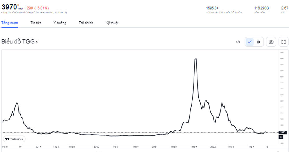 Tới 12/12/2022, TGG có giá dưới 4.000 đồng/cp, trong khi BII ở mức 2.400 đồng/cp.