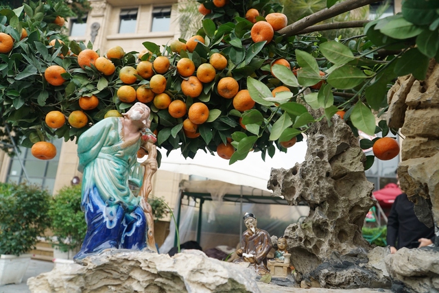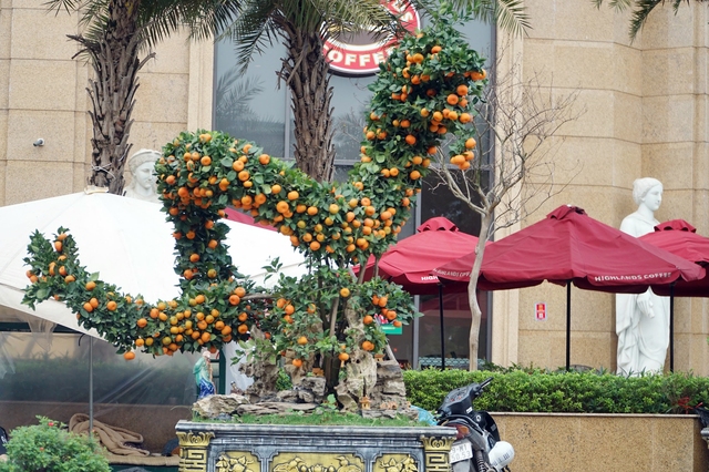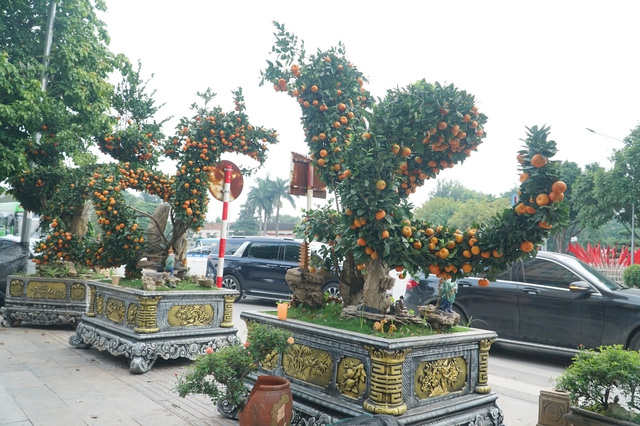 Điển hình, tại đường Lạc Long Quân (Tây Hồ), các mặt hàng cây cảnh như bưởi cảnh, quýt cảnh… cũng bắt đầu "xuống phố". Trong đó, hơn 10 cây quýt cảnh được tạo thế rồng uốn lượn mềm mại, độc đáo đang thu hút nhiều người quan tâm.