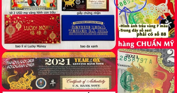 Phóng viên tiếp tục liên hệ với một đầu mối chuyên bán loại tiền này ở quận Thủ Đức, TP HCM. Người này cho biết phần lớn tiền lì xì có yếu tố nước ngoài là tiền lưu niệm, không có giá trị lưu thông. Riêng tờ 2 USD in hình con trâu mạ vàng và tô điểm một số hoa văn, họa tiết trên bề mặt của tiền thật có 2 loại: Một loại từ Mỹ được xách tay về Việt Nam chào bán với giá từ 240.000-300.000 đồng/tờ; loại còn lại do giới kinh doanh trong nước tự thiết kế và in hình con trâu, họa tiết, hoa văn lên tờ 2 USD của Mỹ, giá bán chỉ khoảng 180.000 đồng/tờ; người mua rất khó phân biệt.