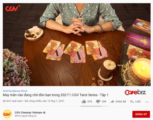 Đơn cử như từ tháng 1/2021, CGV kết hợp với một chuyên gia bói bài tarot để thực hiện series dài tập về tarot, chiếu thứ 4 và thứ 7 mỗi tuần. Theo ghi nhận, các video này dù khá dài nhưng thu về phản hồi tích cực, luôn thu hút vài chục nghìn lượt xem. Đến nay, series CGV Tarot đã thực hiện đến mùa thứ 2.
