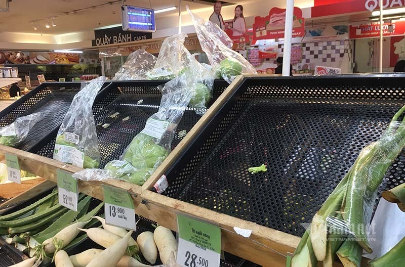 Trên tay xách một túi rau gồm 2 củ su hào và 1 mớ rau cải, chị Đinh Thị Thanh Hiền ở Nguyễn Xiển (Hoàng Mai, Hà Nội) than thở, mấy ngày gần đây cứ tầm hơn 5 giờ chiều xuống siêu thị đã hết sạch rau củ quả các loại. Hôm nay chị rút kinh nghiệm phải đi mua sớm hơn để gia đình có rau ăn.