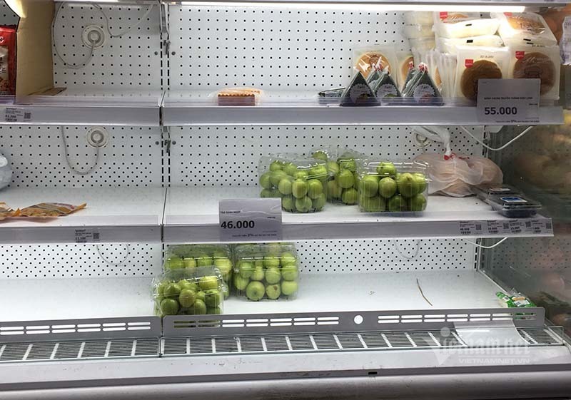 Theo chị Lê Ngọc Anh - nhân viên một cửa hàng thực phẩm ở Nam Từ Liêm (Hà Nội), lượng rau quả tiêu thụ những ngày gần đây tăng đột biến do nhu cầu mua, tích trữ của người dân cao vào đúng mùa dịch, khách không mua nhanh chỉ một tiếng sau là hết sạch.