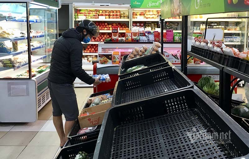 Ghi nhận của PV.VietNamNet tại các siêu thị, cửa hàng thực phẩm vào giờ cao điểm (giờ tan ca làm việc buổu chiều) những ngày này, tình trạng “cháy hàng” thực phẩm rau củ quả thường xuyên xảy ra do một số người dân có tâm lý mua tích trữ để hạn chế ra ngoài nhiều.