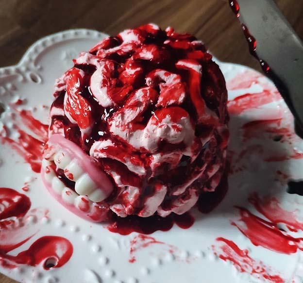 Chị Bùi Thị Thúy ở Duy Tân (Cầu Giấy, Hà Nội) cũng chia sẻ, để chuẩn bị cho lễ hội Halloween ở cơ quan, chị phải đặt trước một loạt bánh trái với đủ các hình thù kinh dị như: hình não người, nhãn cầu, xác ướp, phù thủy,...