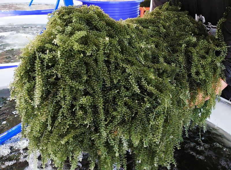 Chị Yến cho biết, rong nho là một loại tảo biển, có hình dạng giống như chùm nho và được mệnh danh là trứng cá muối xanh. Chúng được sử dụng như một loại rau xanh, có giá trị dinh dưỡng cao hơn nhiều so với các loại rau củ thông thường.