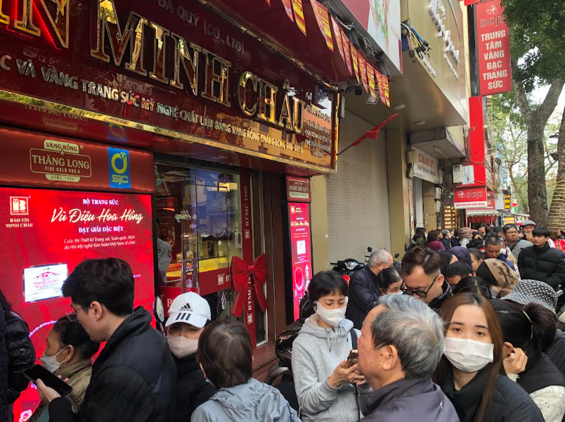 Giữa dòng người rồng rắn xếp hàng trước cửa hàng Bảo Tín Minh Châu, ông Nguyễn Văn Hưng, 60 tuổi (Hai Bà Trưng- Hà Nội), chia sẻ: "Cảnh này khiến tôi nhớ lại thời bao cấp, khi mọi người phải xếp hàng dài để mua thực phẩm".