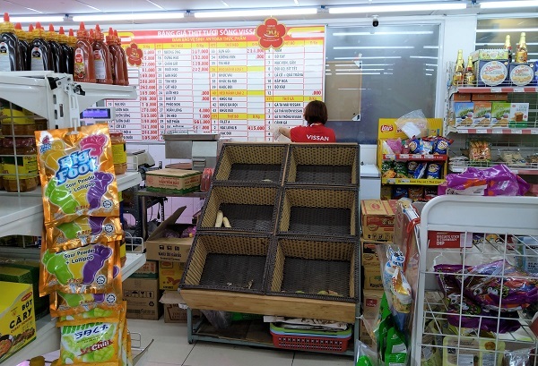 Một siêu thị nằm trên đường Bùi Hữu Nghĩa (quận Bình Thạnh) cũng không có rau nhập về trong sáng nay để bán cho người dân. Tại một siêu thị khác gần đó, chủng loại rau cũng không được phong phú như ngày thường.