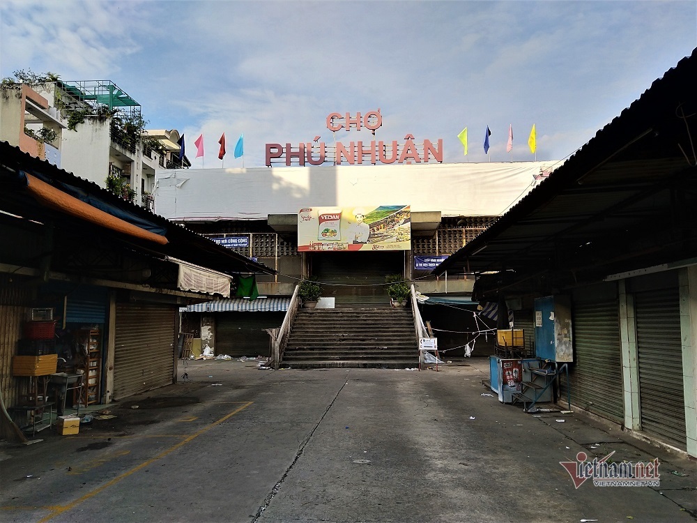 Chợ Phú Nhuận (quận Phú Nhuận) nằm trên tuyến phố vốn nhộn nhịp Phan Đình Phùng cũng không một bóng người lai vãng.