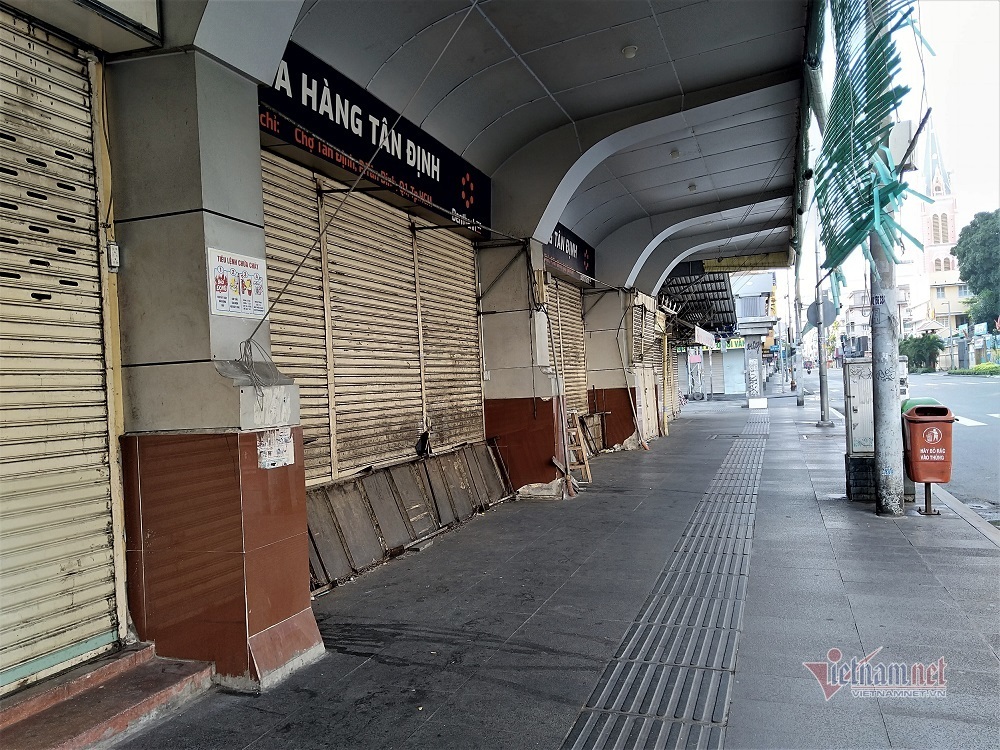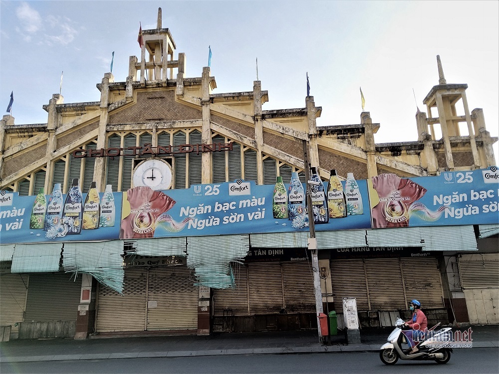 Chợ Tân Định, chợ Đa Kao (quận 1) cũng trong trạng thái tương tự. Các lối vào bị bít kín và khóa trái.