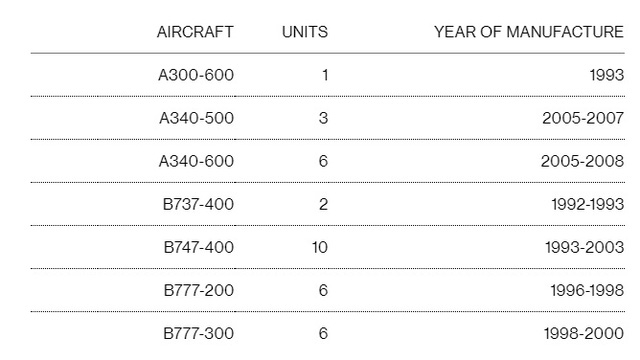 Những máy bay trong nhóm bị bán đi gồm có Boeing 747s, Boeing 777s và Airbus 340s...