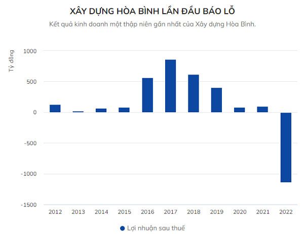 Với các số liệu kể trên, Xây dựng Hòa Bình báo lỗ ròng gần 1.202 tỷ đồng trong quý cuối năm 2022, trong khi cùng kỳ năm 2021 vẫn lãi hơn 19 tỷ đồng.
