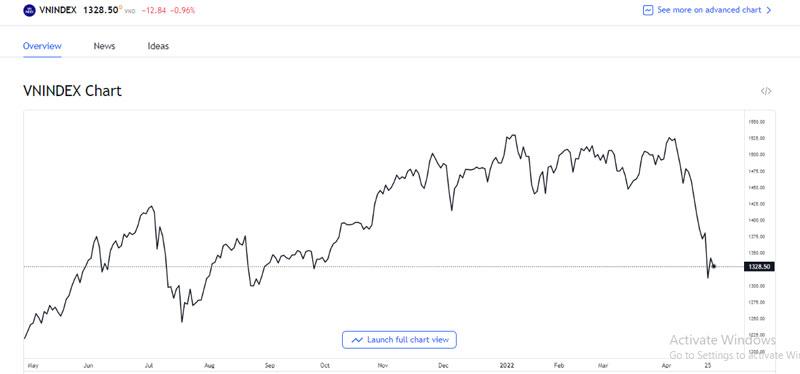 Thị trường chứng khoán Việt Nam trong phiên liền trước 26/4 đã có một cú lội ngược dòng ngoạn mục với cú tăng 30 điểm khi kết thúc phiên sau khi đã giảm 50 điểm trong buổi sáng. Trong phiên 25/4, chỉ số VN-Index giảm hơn 68 điểm. Trong 3 tuần qua, chỉ số này đã giảm khoảng 200 điểm, từ mức đỉnh 1.524 xuống 1.323 như hiện tại.