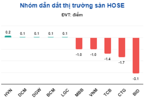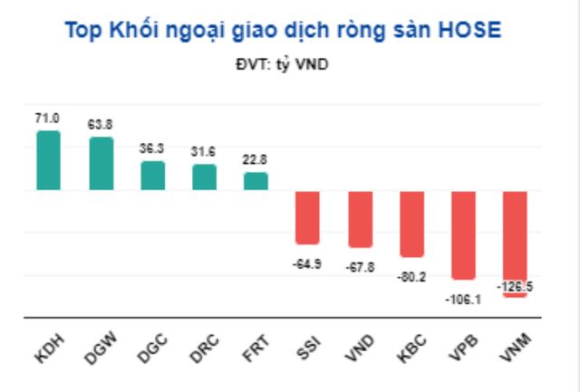 Chỉ số VN-Index giảm 21,1 điểm (-1,7%) xuống mức 1.247 điểm, với lực bán chủ yếu tập trung vào những cổ phiếu bluechips có mức tăng mạnh trong thời gian gần đây như dòng ngân hàng, rồi lan ra toàn thị trường. Nhiều cổ phiếu ngân hàng, chứng khoán, dầu khí, bất động sản (cổ phiếu penny) giảm mạnh vì áp lực chốt lời.
