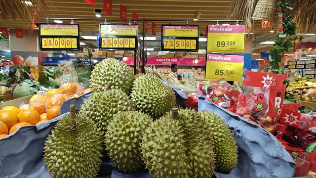 Tại siêu thị Kingfoodmart, giá sầu riêng là 90.000 đồng/kg nhưng cỡ nhỏ hơn.