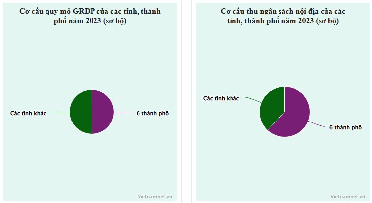 Tương tự, tổng thu ngân sách nội địa của 6 thành phố này theo thống kê sơ bộ năm 2023 đạt 911.417,4 tỷ đồng, đóng góp khoảng 62% vào ngân sách quốc gia.