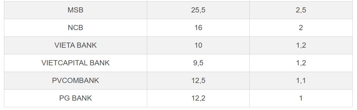 Mức chi thấp nhất thuộc về các ngân hàng VietABank, VietCapital Bank, PVCombank, và PG Bank, trung bình từ 1-1,2 tỷ đồng/người.