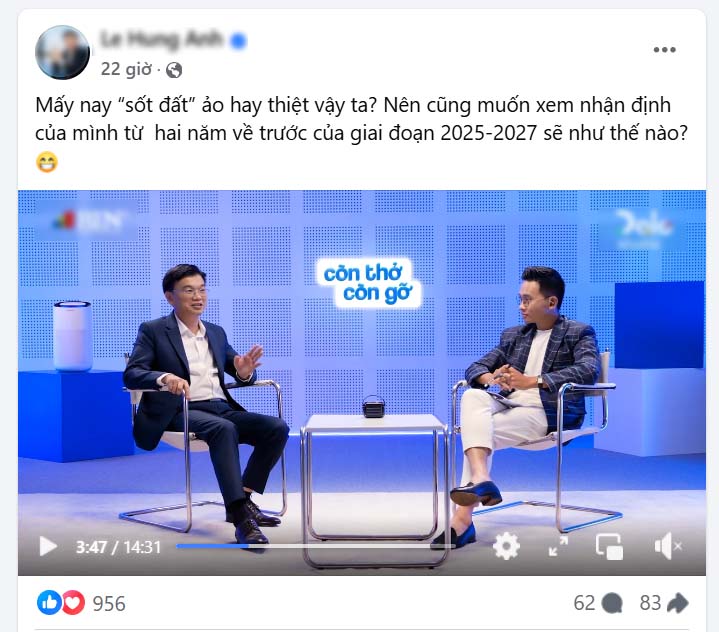 Thời gian qua, hiện tượng “sốt đất” cục bộ đã liên tiếp xuất hiện tại nhiều địa phương trên cả nước, do những khu vực này được nhiều người đồn gắn với thông tin quy hoạch mới hoặc sáp nhập hành chính. Trước diễn biến mới của thị trường bất động sản, Shark Hùng Anh đã có bài viết chia sẻ lại nhận định của mình từ năm 2023 trong talk show “Còn thở còn gỡ” về thị trường giai đoạn 2025-2027.