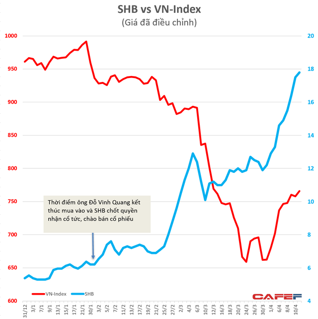 So với thời điểm ông Đỗ Vinh Quang hoàn tất mua vào, SHB đã tăng tăng 170% (tính giá giá điều chỉnh). So với đầu năm thì cổ phiếu này tăng tới 230%!