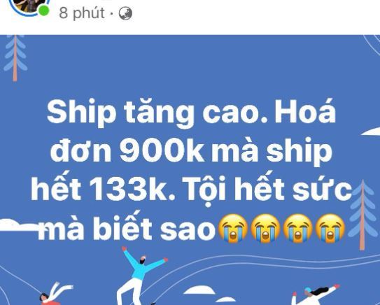 Cần tìm một người giao hàng để kịp đơn giao cho khách, chị A.Vân than trời vì tiền ship (giao hàng) tăng quá cao. “Tiền ship tăng cao quá! hóa đơn 900.000 đồng, tiền ship hết 133.000 đồng mà không biết làm sao”, chị Vân than thở.