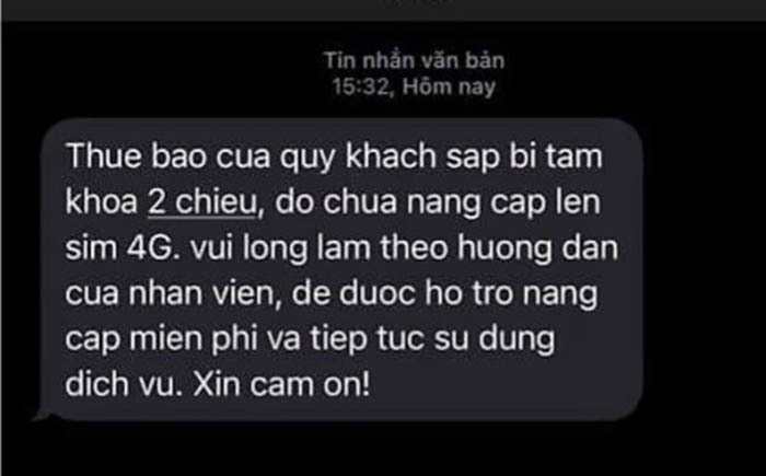 Đầu tháng 4, hàng loạt vụ mạo danh là nhân viên của các nhà mạng gọi điện, nhắn tin hướng dẫn cú pháp để thực hiện nâng cấp sim 3G thành sim 4G nhằm lừa đảo, chiếm đoạt quyền kiểm soát sim điện thoại, đánh cắp các thông tin thẻ tín dụng, lấy mã OTP và thanh toán hàng chục triệu đồng cho các đơn hàng online bằng thẻ tín dụng của người tiêu dùng.