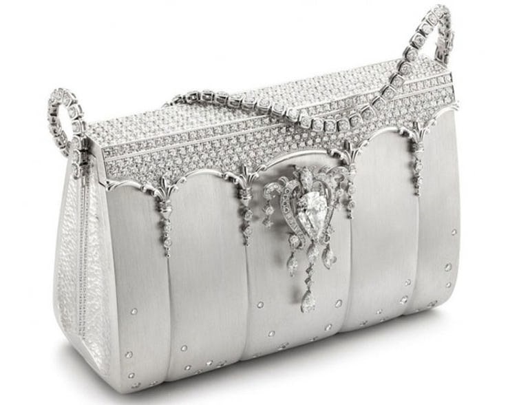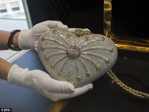Để chiều lòng các "yêu nữ hàng hiệu", thợ kim hoàn nổi tiếng thế giới Robert Mouawad đã cho ra đời tuyệt phẩm túi xách đắt giá hình trái tim có tên gọi là Mouawad’s 1001 Nights Diamond Purse.