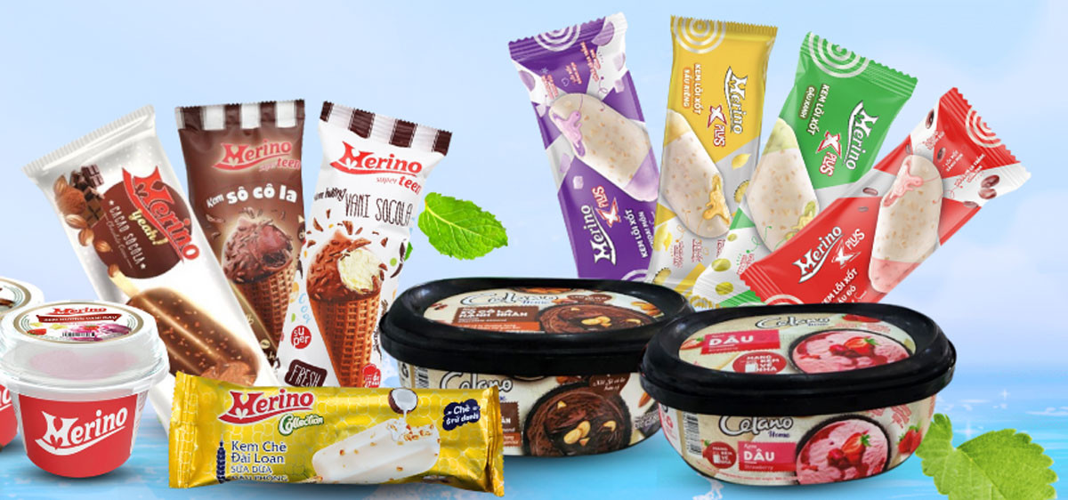KIDO Foods là doanh nghiệp sản xuất và phân phối hai thương hiệu kem Merino và Celano, hiện chiếm thị phần lớn nhất tại Việt Nam.
