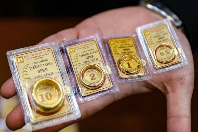 Công ty Bảo Tín Minh Châu cũng nâng mạnh giá vàng nhẫn tròn trơn vàng rồng Thăng Long lên mức 75,88-77,18 triệu đồng/lượng (mua - bán), tăng 500 nghìn đồng/lượng ở cả chiều mua và bán so với chốt phiên trước.