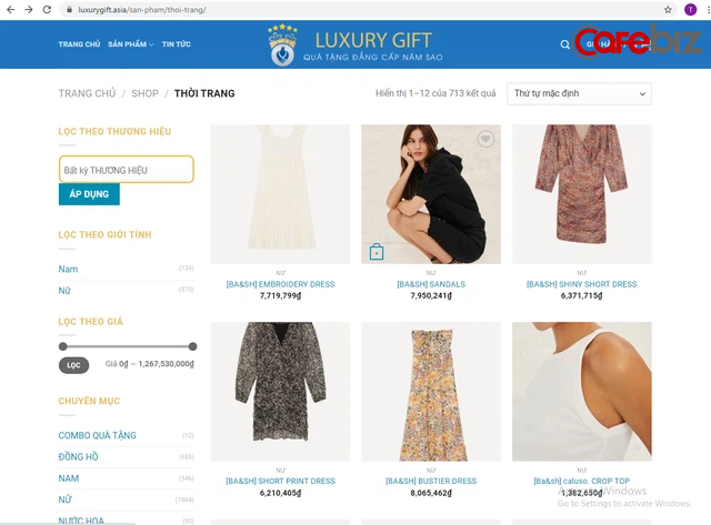 Một điểm thú vị là Luxury Gift phân phối cả thời trang, bán hàng và giao COD (trả tiền khi nhận hàng). Khác biệt hẳn những trang bán đồ thời trang khác, website của Quốc Anh bán những BA&SH hơn 10 triệu đồng, áo khoác Celine 868 triệu đồng, áo Hermes 200 triệu đồng, khách chọn mua KHÔNG CẦN TICK SIZE SỐ.