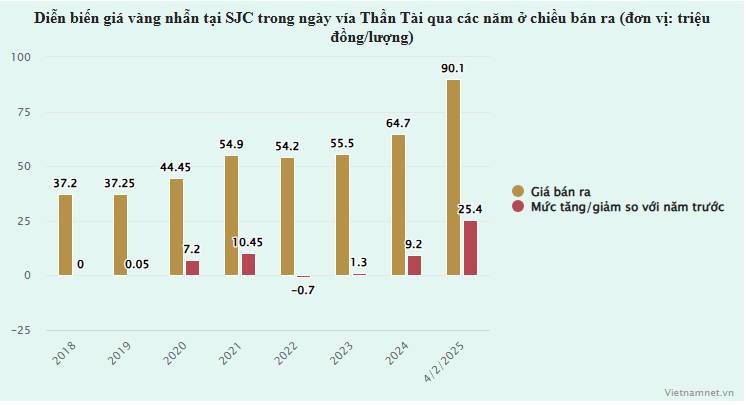 Vậy, giá vàng nhẫn vào ngày vía Thần Tài tăng như thế nào qua các năm?