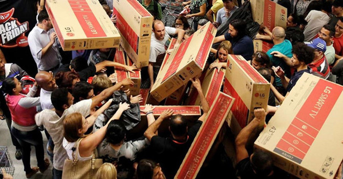 Đáng chú ý nhất là, tại Brazil, có đến hàng trăm người tranh giành nhau mua chiếc tivi giảm giá. Để chấm dứt cuộc hỗn chiến đó, nhân viên phải dùng đến kèn để dập tan đám đông.