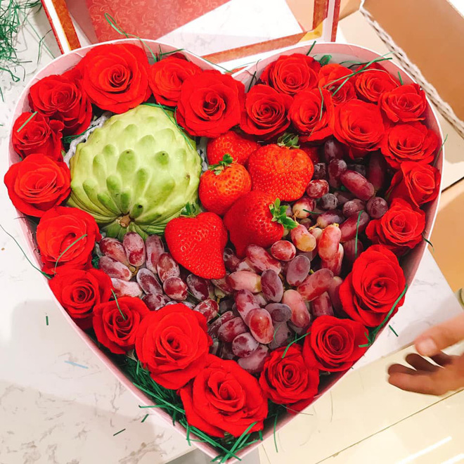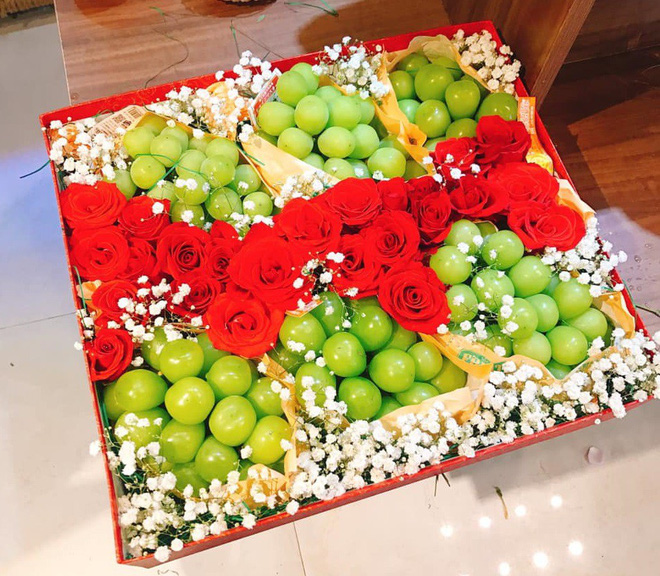 Đắt tiền hơn, ở mức 1-10 triệu đồng/hộp, là hộp quà với nho, hồng, lê… nhập khẩu từ Đài Loan, Nhật Bản, Hong Kong, được trang trí cùng các loại hoa hồng, babi hoặc kèm hoa hồng mạ vàng 24k.