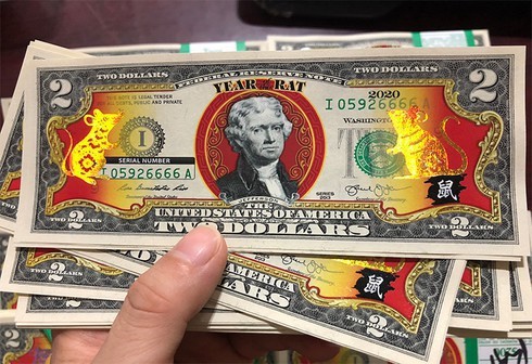 Đến hẹn lại lên, khi gần đến Tết Âm lịch, các loại tiền mới hay tiền 2 USD được xem là may mắn luôn được nhiều người yêu thích lựa chọn để dành lì xì. Đối với tờ 2 USD thông thường thì giá trị thật tại Việt Nam cũng chưa đến 50.000 đồng. Năm nay, đồng 2 USD còn gây sốt trên thị trường khi in hình chuột mạ vàng - linh vật của năm mới Canh Tý.