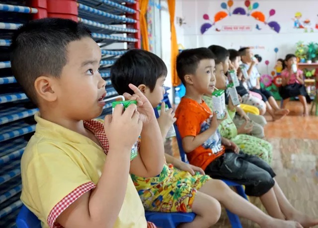 Chương trình Sữa học đường với sự chung tay của cả Nhà nước, nhà trường và doanh nghiệp đã giúp các bậc phụ huynh phần nào vơi bớt gánh lo này.