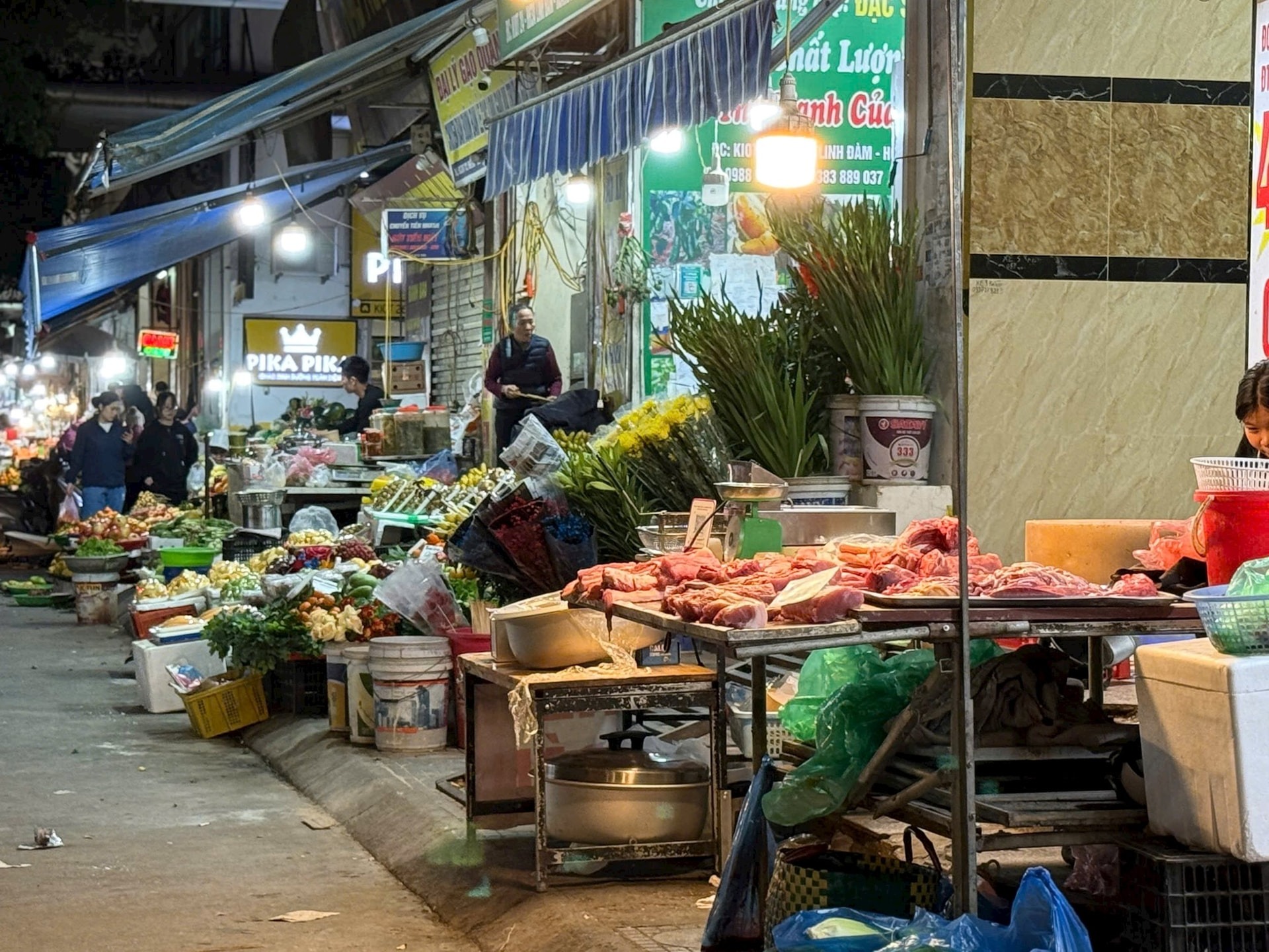 Trong tháng 12, lúc 20h tối, tại khu chợ của phường đông dân cư nhất nhì Hà Nội vẫn còn rất nhiều thịt, cá và rau củ. Chị Phạm Thị Vinh, chủ quầy thịt lợn tại khu chung cư HH Linh Đàm cho biết, cùng thời điểm này năm trước chị có thể bán hết 4 con lợn/ngày nhưng năm nay chị chỉ bán được bằng một nửa. Chị cungc thường xuyên bị ế hàng phải thanh lý giá rẻ cho các quán cơm bụi.