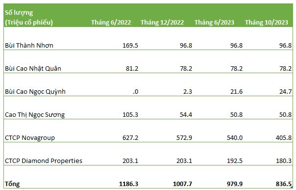 Hệ lụy lớn nhất của phiếu NVL tụt giá là việc các cổ đông lớn của doanh nghiệp này liên tục thông báo bị bán giải chấp cổ phiếu. Nhóm cổ đông lớn nhất của công ty là các cá nhân và pháp nhân liên quan đến ông Bùi Thành Nhơn đã giảm sở hữu tại công ty từ gần 60% vốn về còn 43% vốn. Việc tăng số lượng lớn cổ đông nhỏ lẻ cũng là một trong những nguyên nhân khiến cổ phiếu NVL chưa thể qua lại vùng đỉnh của mình.