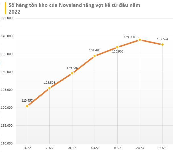 Tuy nhiên, đến cuối quý 3/2023 lượng hàng tồn kho của doanh nghiệp vẫn còn khá lớn, ở mức 137.594, lớn thứ hai trong lịch sử sau mức 139.000 của quý 2/2023.Đây chủ yếu gồm các khoản chi phí tiền sử dụng đất, tư vấn thiết kế, xây dựng và các chi phí khác trực tiếp liên quan đến các dự án.