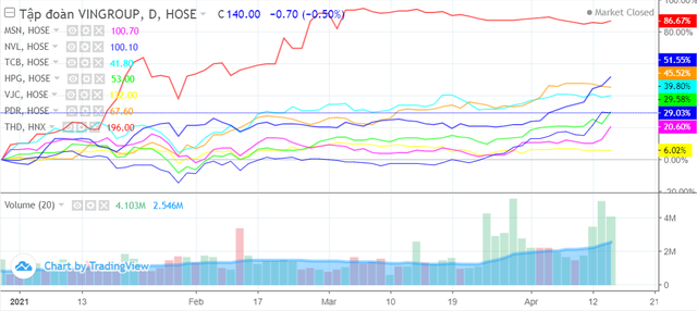 Trong nhiều phiên giao dịch gần đây, cặp đôi VIC – VHM (thuộc Vingroup) hay NVL (Novaland) thường xuyên có vai trò đầu tàu kéo đà tăng của thị trường. Giống như Masan, cổ phiếu Novaland cũng đã vượt mốc 100.000 đồng trong ngày hôm qua.