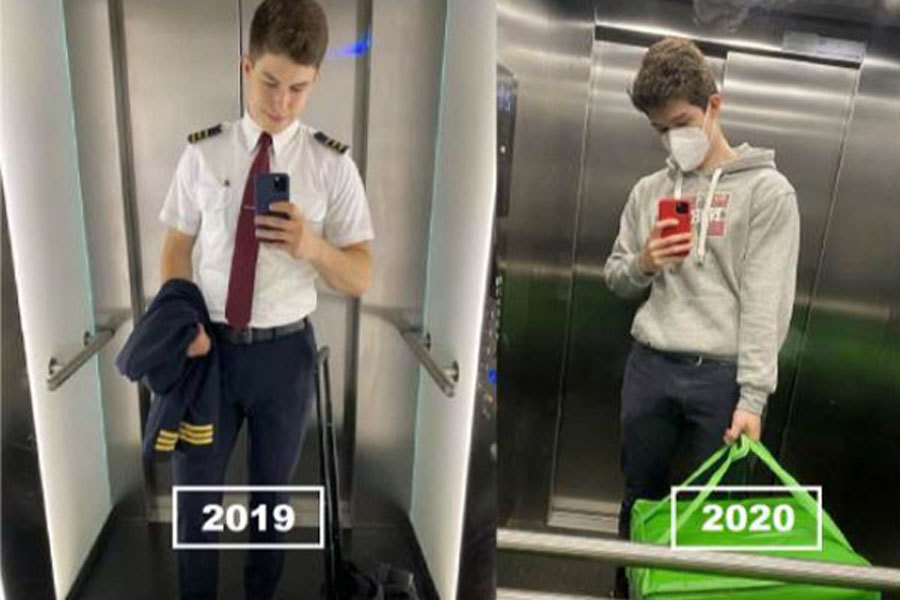 Bức ảnh làm shipper giao hàng để kiếm thêm thu nhập mà phi công người Nga, Roman Savin, chia sẻ mới đây đã gây bão mạng xã hội. Năm 2019, anh luôn trong tình trạng bận rộn với 90 - 100 giờ bay mỗi tháng, nhưng cả năm 2020, anh chỉ ngồi trong buồng lái vẻn vẹn 140 giờ. Để có thu nhập trang trải cuộc sống, nam phi công trẻ buộc phải đi giao đồ ăn - một công việc mà anh chưa bao giờ nghĩ tới sau khi chi hàng trăm nghìn USD cho 3 năm đào tạo.