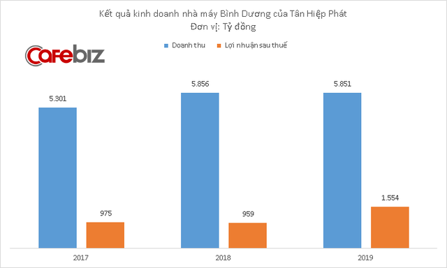 Về lợi nhuận, Tân Hiệp Phát báo lãi khoảng trên dưới 1.000 tỷ đồng giai đoạn 2014-2016, sau đó tăng lên 2.000 tỷ đồng năm 2018 và 3.300 tỷ đồng năm 2019. Doanh thu Tân Hiệp Phát tương đương Coca-Cola và bằng 1/2 so với Suntory Pepsi, nhưng lợi nhuận lại bỏ xa cả 2 đối thủ nhờ tỷ suất sinh lời vượt trội.