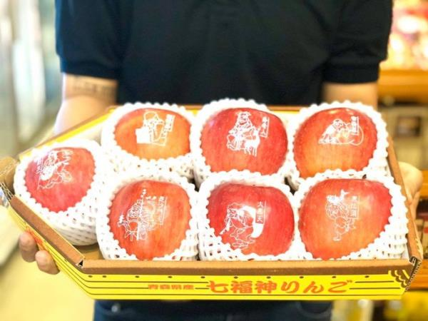 Ngoài ra, trên thị trường còn có táo in hình 7 vị thần may mắn thuộc hàng siêu hiếm ở Nhật Bản. Bộ táo độc đáo thay lời chúc may mắn cực kỳ ấn tượng này có giá 1.990.000 đồng/hộp 7 trái.