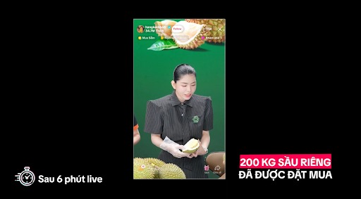 Kết quả là chỉ sau 6 phút lên sóng, khi anh Thanh Thái đang bổ quả sầu riêng Musang King đầu tiên, Hằng Du Mục chưa kịp ăn thử và giới thiệu thì 200kg sầu riêng đã hết sạch sẽ. “Mình bất ngờ hoàn toàn luôn, chưa kịp á một cái thì đã hết hàng rồi” - nhà phân phối nói.
